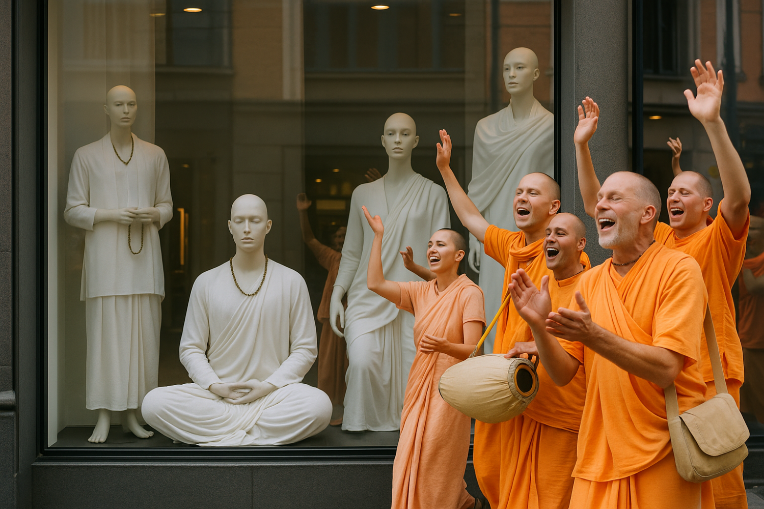 Years passed. Śrīla Prabhupāda left in his vapu form, and I witnessed many of my godbrothers become what I had once feared becoming myself: institutionally established “senior Vaiṣṇavas”, having lost the original fire of preaching enthusiasm that Śrīla Prabhupāda had so powerfully instilled in us by his personal example. Many became dignitaries in their own right, surrounded more and more by disciples who were less and less focused on preaching—reconfirming their lifestyles, pious at best, hedonistic at worst.